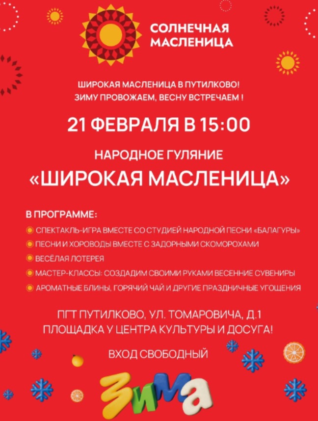 Интерактивная программа «Солнечная Масленица: в гости к Весне зовем!»