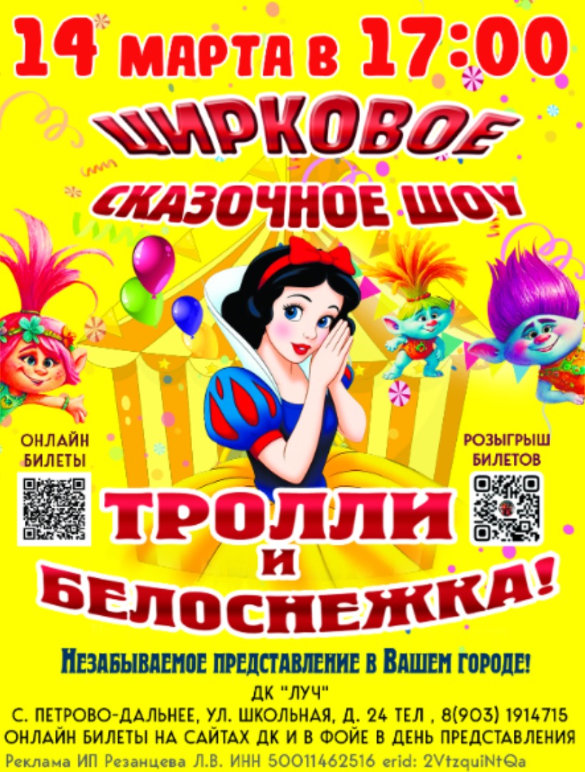 Цирковое сказочное шоу «Тролли и Белоснежка»