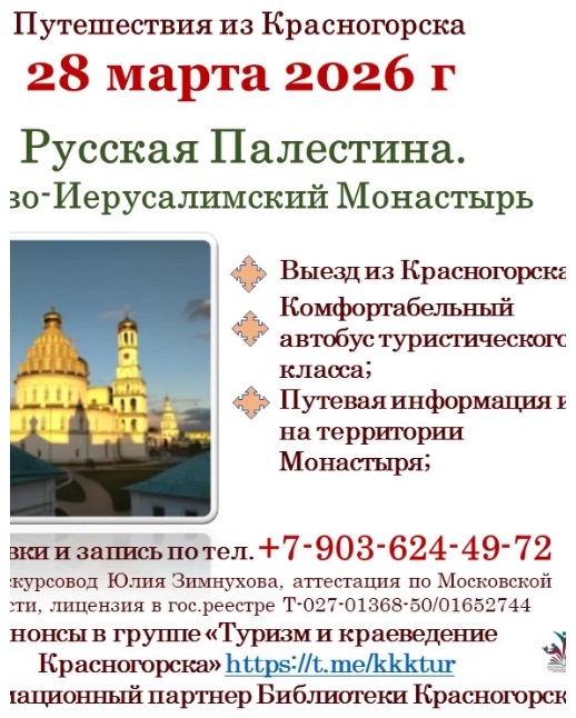 Приглашаем в поездку в Ново-Иерусалимский Монастырь – «Русскую Палестину»