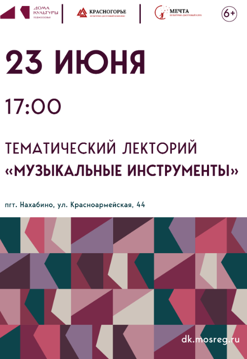 Дорогие родители и юные музыканты! Приглашаем ваших детей на увлекательный лекторий «Музыкальные инструменты», где они познакомятся с удивительным миром звуков и музыкальных инструментов! 🥁🎷🎻 📆Дата и время: 23 июня 17:00 📍Место проведения: пгт. Нахабино, ул. Красноармейская, 44, Клуб «Мечта». Что вас ждёт: ● Познавательные лекции о самых разных музыкальных инструментах: от древних до современных. ● Интерактивный мастер-класс, где дети смогут попробовать играть на различных инструментах. ● Музыкальные игры и викторины, чтобы закрепить полученные знания. ● Творческие задания, развивающие музыкальный слух и чувство ритма. ● Знакомство с известными музыкальными произведениями, исполняемыми на разных инструментах. Это отличная возможность для вашего ребёнка открыть для себя новые музыкальные инструменты, развить интерес к музыке и узнать, на чём он хотел бы играть в будущем. Лекторий проведёт профессиональный музыкант, который увлечёт детей в мир звуков и мелодий. Подарите вашему ребёнку возможность погрузиться в волшебный мир музыки и открыть для себя новые горизонты! 🎭✨ Ждём вас на лектории «Музыкальные инструменты»! 🎶🥁