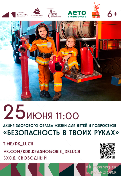 В Доме культуры «Луч» пройдёт специальная акция, посвящённая пожарной безопасности. Вас ждёт: Просмотр короткометражного фильма– узнаете, как избежать опасных ситуаций; Интерактивная беседа, на которой вам расскажут о важных правилах поведения с огнём; Загадки и викторины помогут проверить свои знания, а важные советы – научит правильно действовать в экстренных случаях. Приходите – будет не только полезно, но и очень интересно! Научимся вместе беречь себя и своих близких! Предупреждён – значит вооружён!